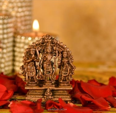 Bring home the blessings of Lord Ram, Sita, Lakshman, and Hanuman with this exquisitely handcrafted copper idol—an elegant and divine addition to your pooja room.