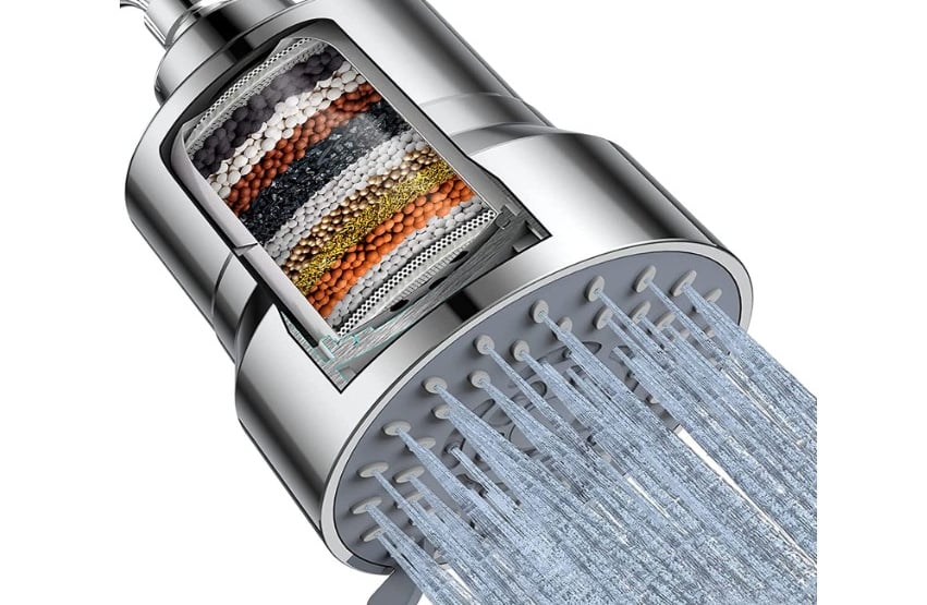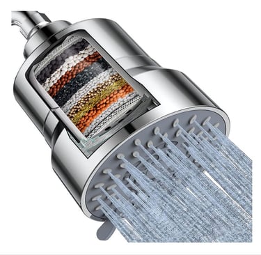 This shower head is equipped with a 15-stage filter cartridge designed to remove chlorine, heavy metals, rust, bacteria, and harmful substances commonly found in hard water. It ensures cleaner, safer, and softer water for both your skin and hair.